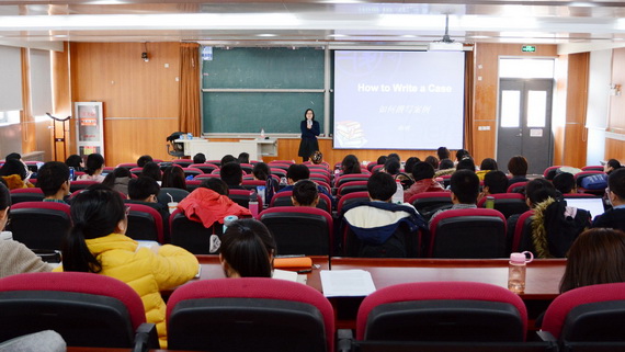 在报告中,郑明教授结合自身丰富的教学和案例撰写经验,从案例(Case)的定义、特征、类型、构造方法、陈述方式等角度阐述了案例撰写的要点。她指出,案例是一个信息的综合体,它能够提供或塑造一种具有内在逻辑的情景用于模拟或分析某一主题。案例需要解决一个真实的实际问题,有别于故事(story)、论文(paper)和研究报告(report)。案例的构成要素包括情景、背景、主体或主人公、逻辑性、问题、解决方案、不相关信息等。案例按目的可分为教学案例、研究案例和商业案例,按内容可分为综合型案例和主题型案例。构造案例的一种方法是SCQA法:由背景(Setting)引出冲突(Conflict),进而引出疑问(Question),最后得到答案(Answer)。案例的陈述方式主要有两种:按内容分门别类阐述的结构型案例,以及按发生时间陈述叙事型案例。最后,郑明教授还回答了师生们关于案例选题、案例素材的来源等方面的提问。