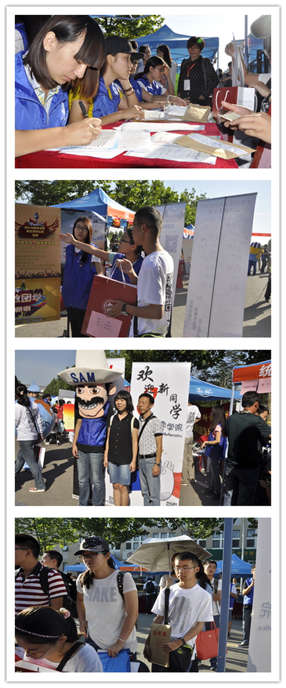 迎新当天,公司老师与志愿者们在公司报到点共同迎接新生的到来。公司团总支在龙马路上安排了志愿服务点。每一位新生都在志愿者的指引下完成了信息登记、资料发放、体检等报到流程。在新生们的资料包中,有公司精心为新生准备的作息表、课程表、院服以及活动安排表。在完成报到手续后,有不少新生来到公司设置的合影留念处,留下了他们在大公司园里的第一张照片。在报到现场,最别具一格的当属长着一脸大胡子的卡通人物——山姆大叔,它憨厚可掬的笑容使新生们感受到了太阳成集团tyc严谨却又不失活泼的公司特色。
