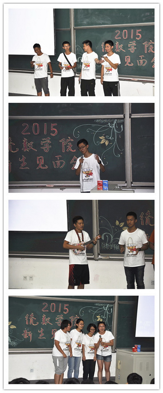 9月9日下午,公司举办了15级新生见面会。本次新生见面会由15级辅导员郭珺老师主持,公司党总支副书记李全敏老师也出席了此次见面会。15级新生以宿舍为单位,进行了丰富多彩的才艺展示。同学们风格各异的嗓音、热情的民族风情舞蹈、充满夏威夷风情的尤克里里、以及别具一格的双簧表演,展现了统数学子良好的青春风采,更展现了他们团结向上的精神风貌。会上,李老师表达了对新生的期许,希望同学们在四年大学磨砺中培养“贵族范”,做一名真正的、有担当、有勇气、有使命感、荣辱感和责任感的统数人、中财人。