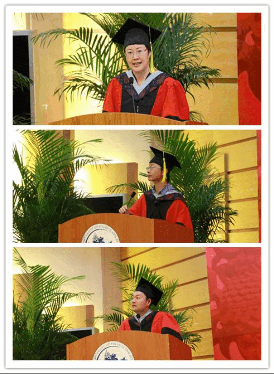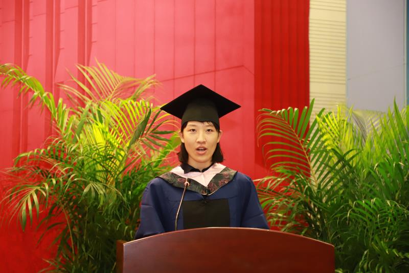 来自于2014级金融数学班的万宇佳同学作为本科生毕业生代表和大家一起回顾了四年求学时光中的艰辛、苦涩、挣扎和迷茫,她认为这一切都是“大学带给我们最深的洗礼”,相信每一位毕业生都会将善良、乐观、勤思、进取的品格带出校门,成为中财统数人的标签。