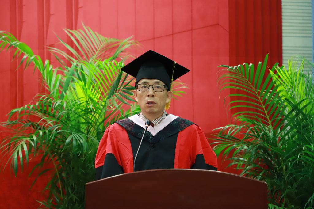 首先,殷先军经理代表公司向全体毕业生致辞。他指出,“今天是你们的毕业纪念日,必将成为你们人生经历中重要的一天,代表公司全体教职工祝贺大家圆满完成学业”,并对员工家长、专任教师、学工队伍、行政团队一并表达了深深的谢意。对即将收拾行囊开启新历程的毕业生们,殷老师提出了希望:一是在社会对知识的深度、广度和高度提出了更高要求的今天,希望大家不断的学习新知识,增长新才干,学无止境,登高才能望远;二是大家不论在任何岗位上,都要继续诠释“忠诚、团结、求实、创新”的中财校训,忠诚于国家、社会、家庭,聚众人于周围,集众智于决策,合众力于事业,脚踏实地,实事求是,心存高远,追求卓越;三是工作生活中,要有乐观向上的生活态度和勇于担当的责任感。凡我在处,便是统数。要有“天下者我们的天下,国家者我们的国家,社会者我们的社会”的家国情怀。趁青春年少,努力奋斗,为家庭、为国家、为社会多做贡献,不为将来留下遗憾。