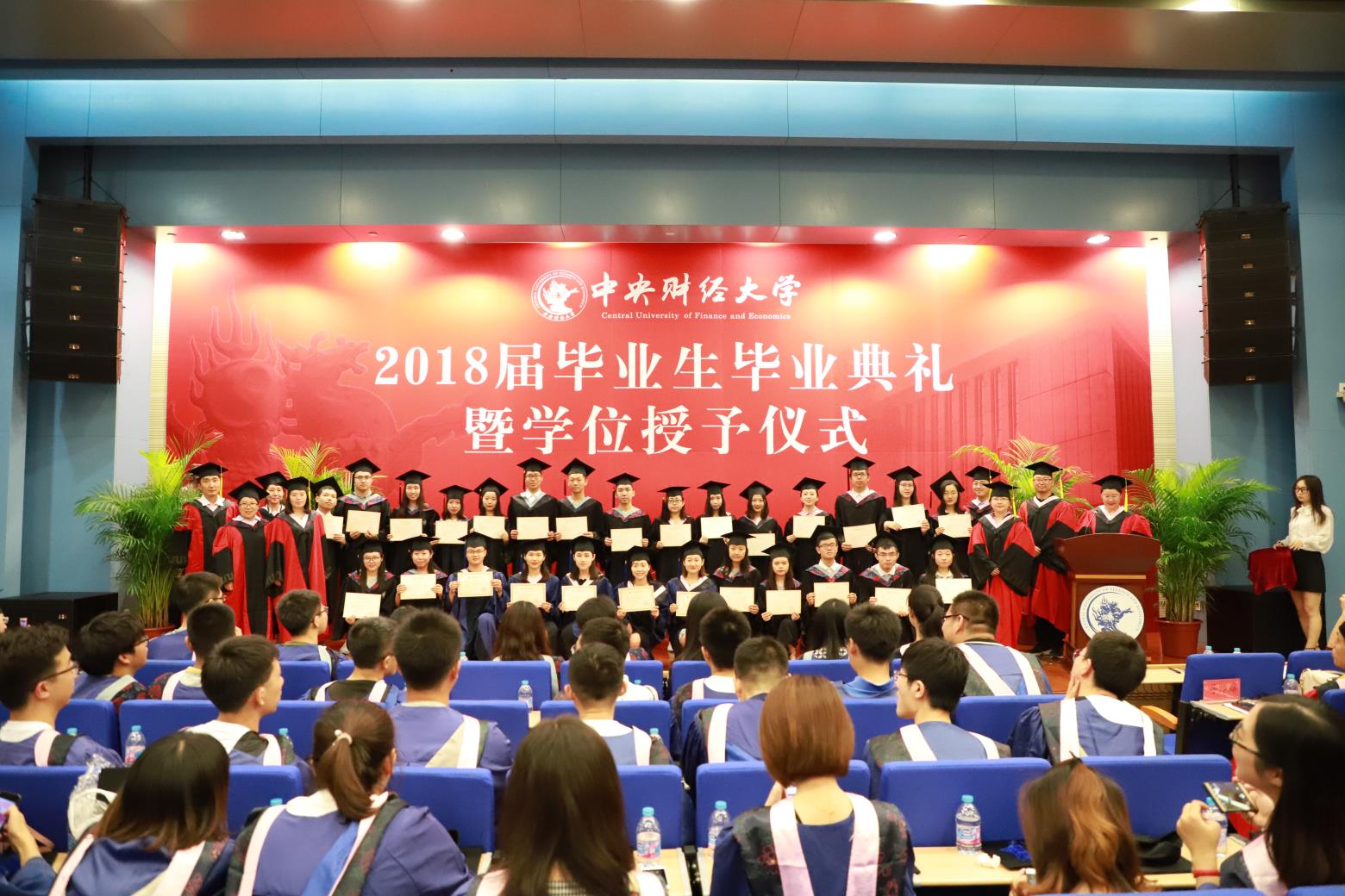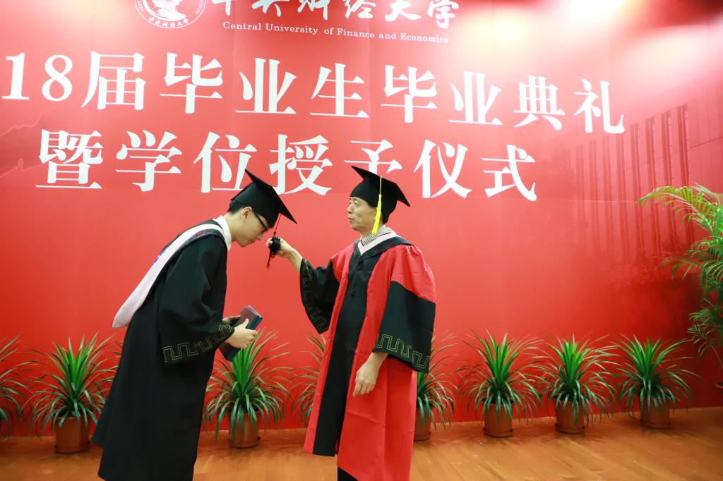 伴随着轻柔的音乐,典礼气氛在拨转流苏环节达到高潮。副经理马景义和贾尚晖分别宣读了2018届本科、硕士研究生毕业生学位授予名单,毕业生们怀着喜悦与激动的心情登台受礼,经理殷先军为毕业生正冠拨穗,颁发毕业证书和学位证书,并与同学们热情握手,合影留念。