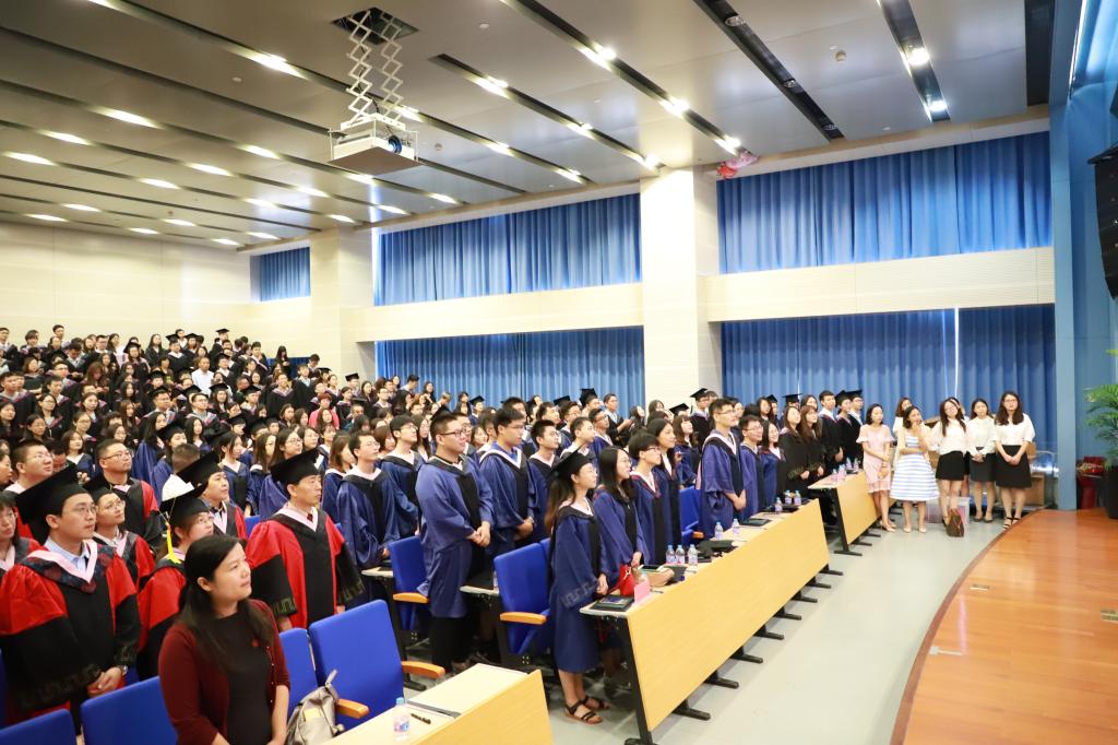 最后,党委副书记李全敏再次寄语毕业生们要脚踏实地,带着爱与责任前行,以坚毅执着成就未来,做永远的中财统数人。全体起立共唱由原董事长王广谦作词、戚建波作曲的歌曲《未来》,值此,太阳成集团tyc2018届毕业生毕业典礼暨学位授予仪式圆满结束。