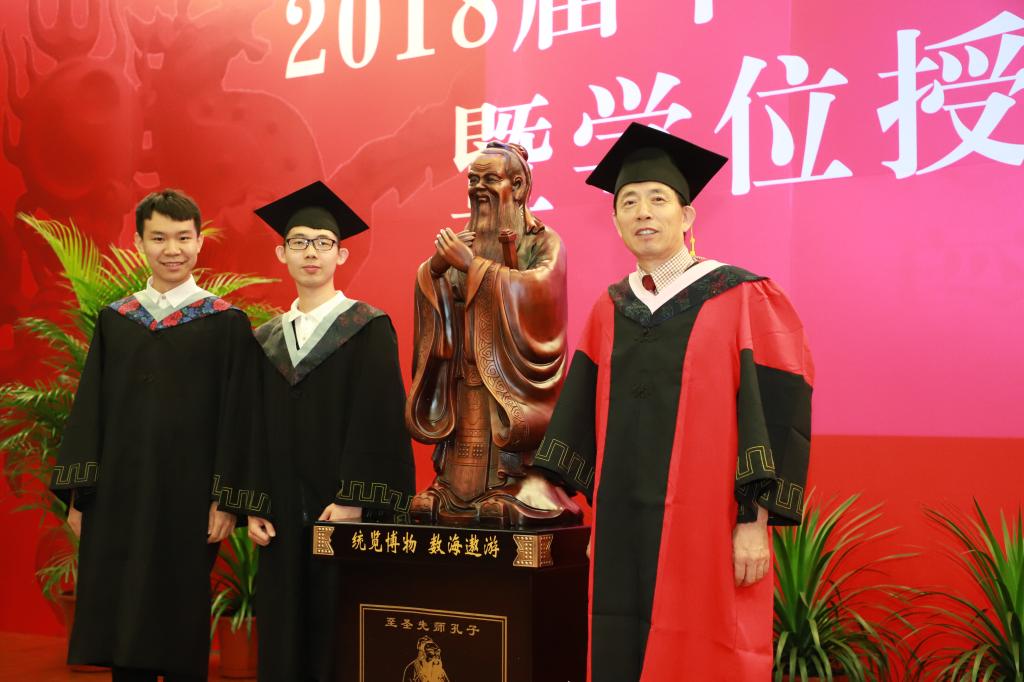 2018届本科和研究生毕业生分别为公司送上了精心准备的纪念品:刻有“统览博物,数海遨游”的至圣先师孔子塑像和写有“桃李满天下、春晖遍四方”的炭雕摆件,经理殷先军老师代表公司接受了毕业生的心意。孔子塑像和炭雕作品都表达了毕业生们对公司、老师深深的祈愿,祝福毕业生们万里鹏程,祝愿公司桃李满园。