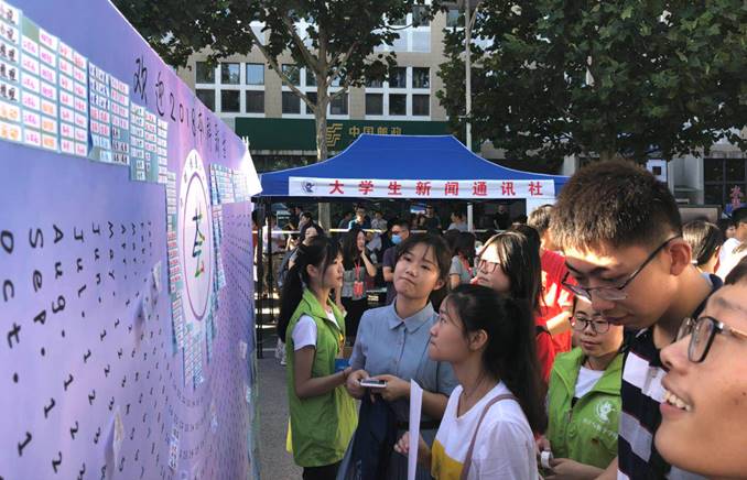 早晨八点,迎新报道注册工作正式开始。在志愿者们的悉心引导下,新同学们按照“贴日历板—报道注册—领取材料—捅树礼物”的顺序完成注册。渐渐地,日历板上贴满的各种各样的个性标签,“捅树”上的祝福也一个个地都找到了它的归属。“捅树”与“统数”谐音,意味新生们可以像树木一样茁壮成长,成为国家的栋梁之才,同学们将每一块写了自己名字的石头放到树下,意味着每一位新生都将为公司的建设添砖加瓦。尽管沙河九月的大风时常肆虐,为迎新工作造成了一些麻烦,但是志愿者们热情不减,仍然耐心地帮助新生完成报到工作。