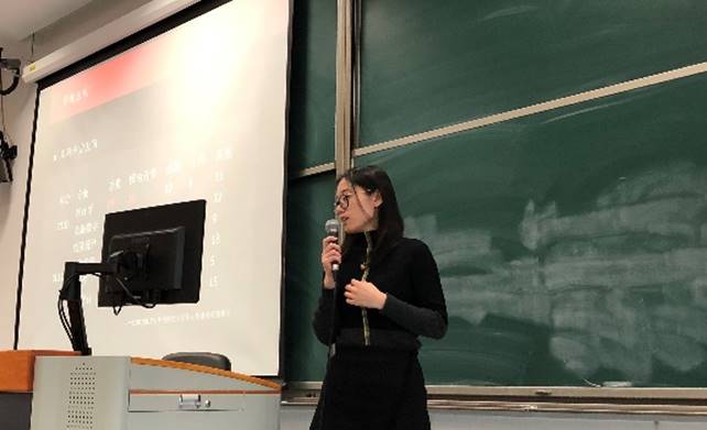 接下来,交流活动正式开始。由张之昊同学首先向大家进行经验分享。关于毕业后我们统数人能做什么,是所有人都很关心的问题。张之昊通过过去两年内公司毕业生去向数据的展示与个人这两个月来的秋季招聘的体会,向大家深入浅出的解答了这个人人关心却鲜有回答的问题。