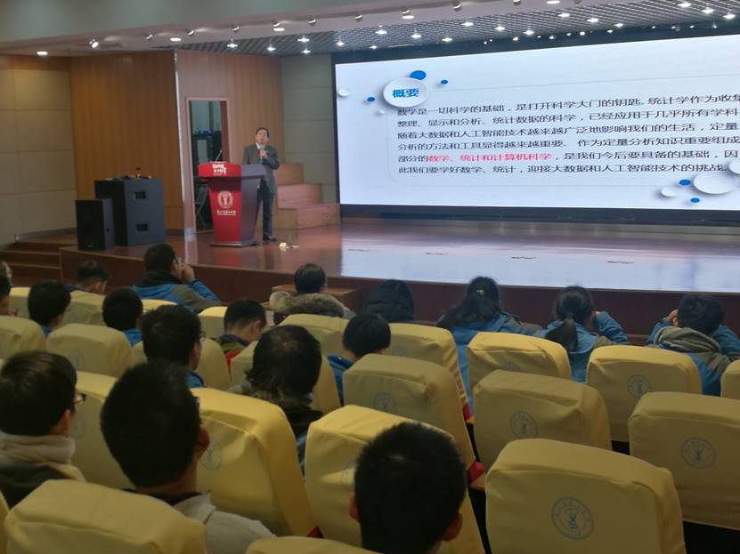27日晚上,殷先军经理为萧山中学高一和高二员工做了题为《数学和统计:打开现代科学大门的钥匙》的报告,报告由萧山中学员工处主任方飞燕主持。殷先军经理用案例的形式对现代科学研究中,数学、统计、数据科学的深度应用做了精彩的阐述,报告结束后,耐心回答了部分同学在数学学习中的问题。报告得到了在场萧山中学师生的一致好评。