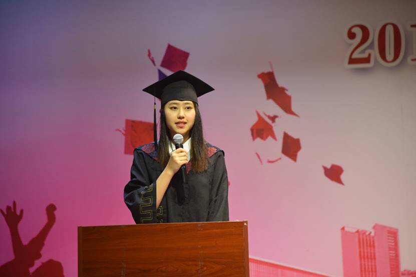 薛玉山老师作为教师代表向毕业生们表达了最诚挚的祝贺,他对全体毕业生提出了三点希望,一是保持敬畏反思,二是找准定位方向,三是牢记责任担当。薛老师的讲话巧妙引用了许多数学专有名词,引发了毕业生的阵阵共鸣。
