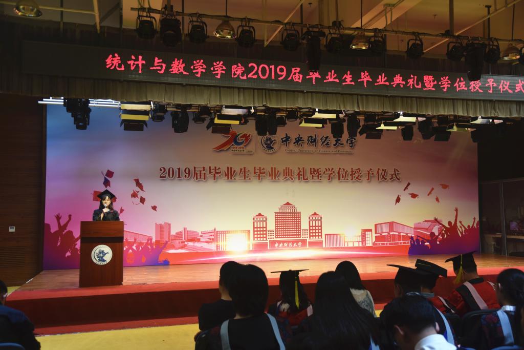 来自2015级应用统计专业的刘金钊同学和来自2016级数量经济学专业硕士研究生南孟哲同学分别作为本科生和研究生毕业生代表和大家一起回顾了在中财太阳成集团tyc求学时光中的迷茫、汗水、喜悦和成长。“博观而约取,厚积薄发”,是“百尺竿头,更进一步”,是“一路黔行,未来可期”,我们收获的是“中财人龙马担乾坤的胆识与魄力”。他们表达了能够成为中财统数人的自豪和对母校的祝福与感激,以及统数学子为复兴中华奋斗的决心和信心。