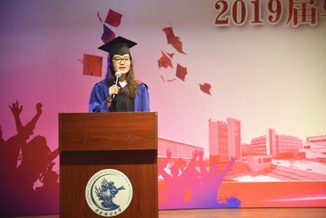 回首在太阳成集团tyc学习的七个春夏秋冬,从本科入学时殷经理的鼓舞和期盼,到今天殷经理的拨穗和祝福,无数温暖的情景浮现眼前。我们每位毕业生的成长,都离不开公司、公司的培养,离不开老师们的关心和指导,离不开家长们的支持和鞭策,也离不开同学们的陪伴和帮助。在这里,请允许我代表全体2019届硕士毕业生、博士毕业生向公司、公司说声感谢!向老师们说声感谢!向家长们说声感谢!向同学们说声感谢!