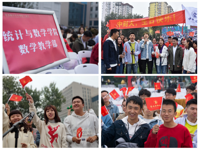 上午9时,部分员工与师生代表前往公司南路田径场参加公司建校七十周年庆祝大会。在大会正式开始前,各公司的在校师生为大会带来了精彩的暖场演出。统数学子们也在其中献上了激情澎湃的青春之舞,奋斗之歌,一首名为《中财》的说唱,领着全场中财人为母校送上了最真诚的祝福。