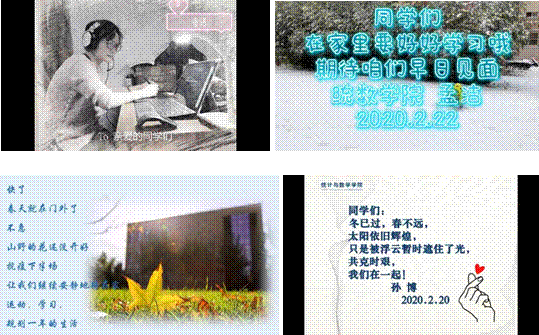 在教学过程中,支部党员教师一方面保质保量带领员工学习,指导员工科研,一方面心系员工的心理发展。在当前疫情正值攻关时刻,员工“不离家”,踏实学习是教师关注的两个关键点。为了更好地安抚员工在疫情期间的身心健康发展,更积极地开展线上教学活动,数理统计系教工党支部开展了主题党日活动,号召党员同志为员工送出寄语:同学们,老师有话说。并以图片或视频的形式展现教师备课上课的场景,让员工了解教师与员工是一体的,员工“停课不停学”,教师“离校不离教”。