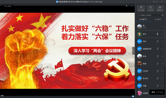 之后,部分老师围绕“扎实做好‘六稳’工作,着力落实‘六保’任务”发表了学习感想,特别是与自身工作相联系,坚定了“在学中做,在做中学,以学促做,边学边做”的信念。