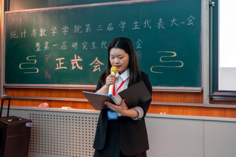 在新一届员工委员会主席团竞选环节中,共有七名候选人参与竞选,分别为李萌、丁玺博、郑舒心、任伊诺、赵思淇、李宜琛、张博雅,他们分别作了竞选演说并进行了答辩,展现了他们对团学工作的思考与规划以及个人情况。七位同学各有所长,风格各异,有的从自身团学经历出发进行思考,讲述自己通过团学经验获得的成长与竞争优势;有的则从团学当下问题出发,反思并设法解决团学眼下的不足;有的带着改革经验,展望未来员工会的前进方向……他们在短短几分钟内展现了对统数团学工作的热爱与坚持,同时展现了当代青年锐意进取的精神风貌。
