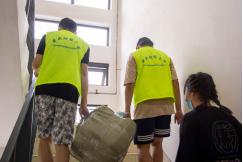 (志愿者协助搬运行李)