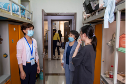 下午时分,公司领导带队,和新生班主任、辅导员老师带队一起走访了公司男女新生宿舍。在西区1号楼和西区5号楼,老师们仔细询问了新生的入住情况和适应情况,对大学宿舍生活给予相应的指导,并对他们抱以衷心的祝贺与殷切的期盼。