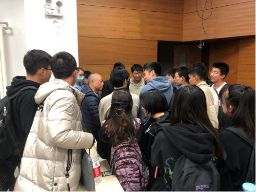 讲座结束后同学们依然热度不减,围拢上前继续与路广处长进行交流和探讨。