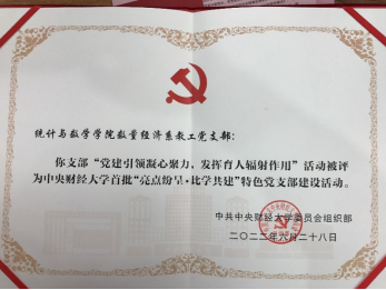近年来,公司党委始终坚持围绕中心抓党建,抓好党建促发展,带领广大师生以昂扬的精神面貌投入党的教育事业中,加快“双一流”建设,扎实工作,在各项党建工作中取得了优异的成绩。公司党委获得“先进党组织(二级党组织)”荣誉称号,应用数学系教工党支部获得“先进党组织(教工党支部)”荣誉称号,数理统计系教工党支部获得“先进基层党组织(先进教工党支部)”荣誉称号,数量经济系教工党支部获评首批校级“党建工作样板支部”。