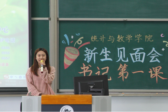 2022年10月3日下午,2022级新生见面会在西区203教室举办,公司党委书记李全敏老师,党委副书记边雅静老师,团委副书记、2022级辅导员赵雪琪老师与全体本科新生欢聚一堂,与国同庆。不论是精炼优美的主持介绍,还是有条不紊的节目衔接,都向我们展现了统数新生自信焕发的青春风采。