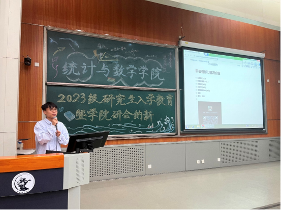 研究生教务干事王浩高老师首先表达了对新生学有所成的美好祝愿,希望同学们做好职业规划;其次着重对教务管理和公司产品方面的重要问题进行了说明,尤其强调选课需要在规定时间内及时补选、退选,遵守研究生管理规定按时上课;最后对研究生毕业程序作了简要说明。